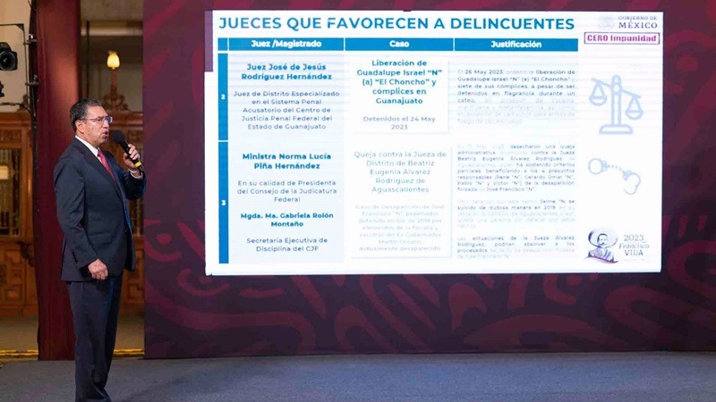 El caso de los jueces fue presentado por el subsecretario de Seguridad Pública de la Secretaría de Seguridad y Protección Ciudadana (SSPC), Luis Rodríguez Bucio, al presentar el informe Cero Impunidad frente al presidente Andrés Manuel López Obrador.