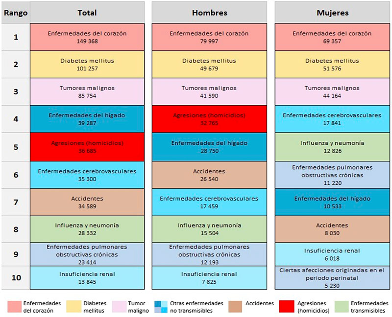 Principales causas de muerte por sexo