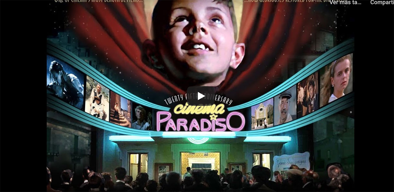 Ahora que hemos vuelto a ver Cinema Paradiso por YouTube, recordé la catarsis que tuve cuando la vimos en el cine Bella Época allá en los sesentas: al final, sollozando como no lo había hecho en años, un conocido trató de saludarme y yo me negué hacerlo: paliacate en mano, como paño de lágrimas, le decía con la mano que otro día sí, que hoy así… ¡no!