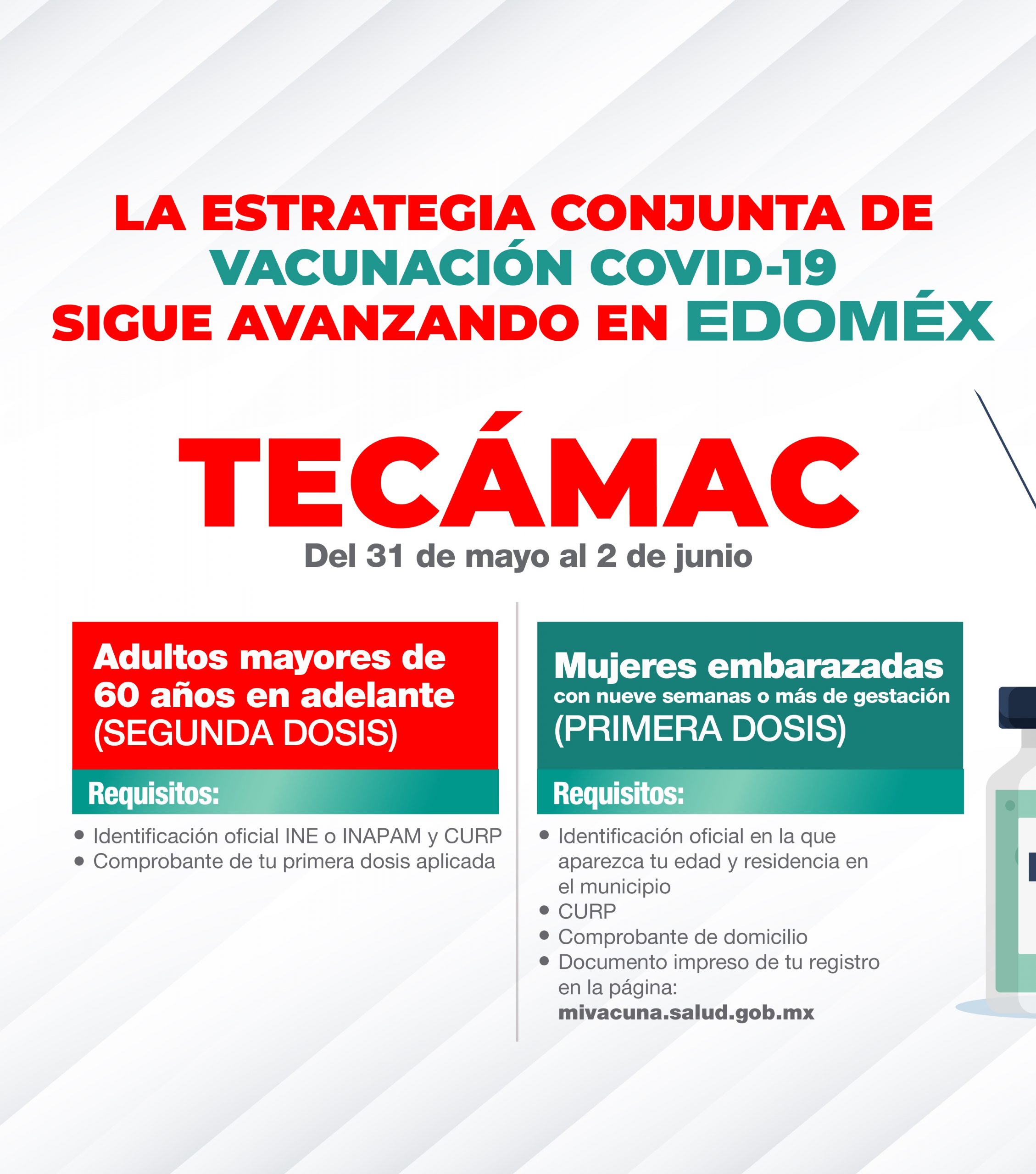 ESTADO DE MÉXICO.- El miércoles 2 de junio en el municipio de Tecámac finalizó la jornada de vacunación completa para adultos mayores de 60 años, lo que significa que este sector de la población ya recibió las dos dosis del biológico.