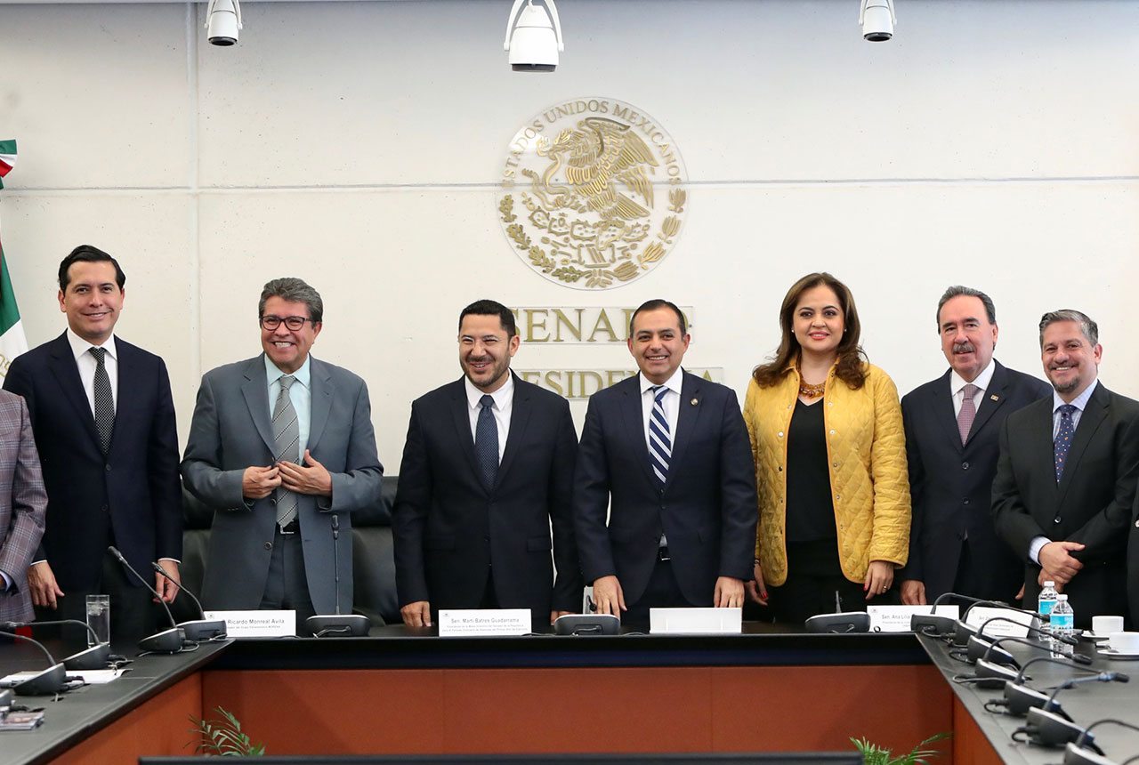En el encuentro, los secretarios generales de Servicios Administrativos y de Servicios Parlamentarios, Roberto Figueroa Martínez y Arturo Garita Alonso, respectivamente, entregaron las carpetas con la información sobre el estado que guarda la administración del Senado de la República.