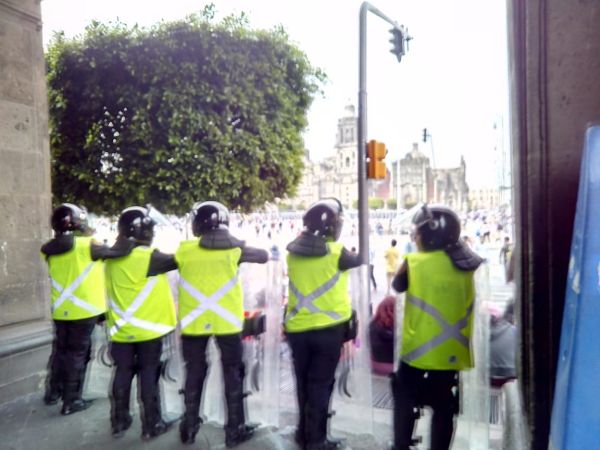 “Sin represión, sin golpes, pero con la careta abajo; ya tenemos tres lesionadas, ¡pónganse chingonas!”, dijo la comandante del agrupamiento destacado en el edificio de gobierno capitalino mientras reorganizaba la formación de Ateneas.