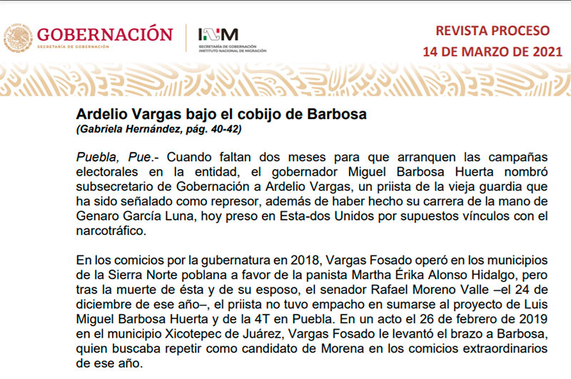 El documento oficial, con fecha 14 de marzo de 2021 recoge un reportaje de Proceso. Con uno de sus párrafos cerramos esta historia, esperando haberle dado los elementos para que usted arme la Historia. Dice así: