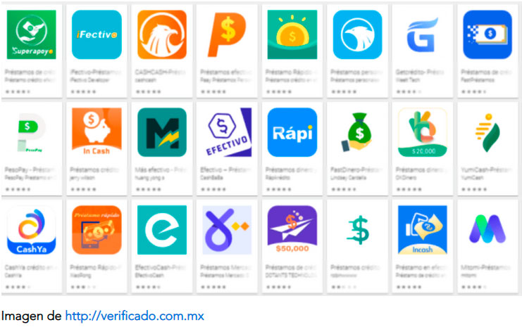 Los teléfonos inteligentes no lo son tanto. Abundan aplicaciones fraudulentas mediante las cuales otorgan préstamos, no sin antes pedir acceso a todos los contactos y a todas las fotografías que tengan las personas en sus aparatos. Las personas que ya tienen al casero en la puerta para cobrar la renta, o un hijo enfermo, por mencionar ejemplos cotidianos, dan acceso a sus datos personales, para obtener de mil a cinco mil pesos. A las personas del directorio de contactos, etiquetadas como “mamá”, o “papá”, o tienen los mismos apellidos de las que solicitaron un préstamo, en automático los convierten en “deudores solidarios”, y son sujetos de amenazas si no pagan la cantidad prestada mediante depósito en cuenta, más, alrededor del 100 % de intereses… semanales