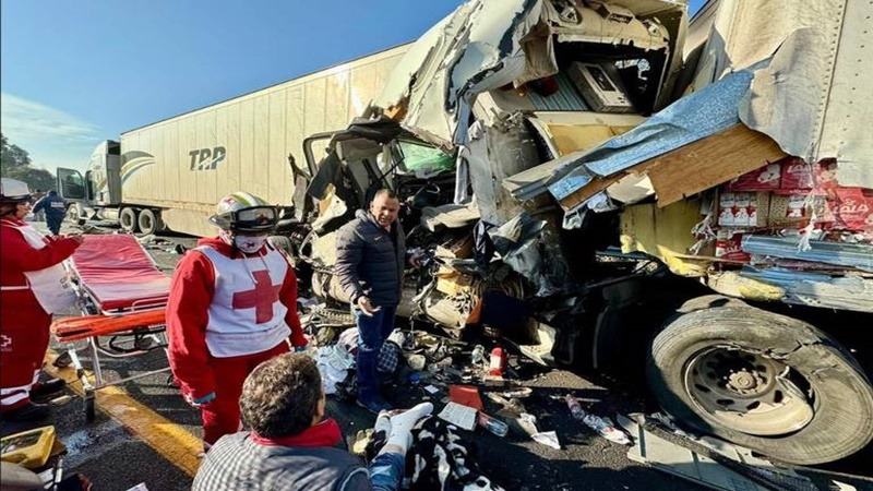 Fuerte choque entre trailers provoca caos vial en el Circuito Exterior Mexiquense