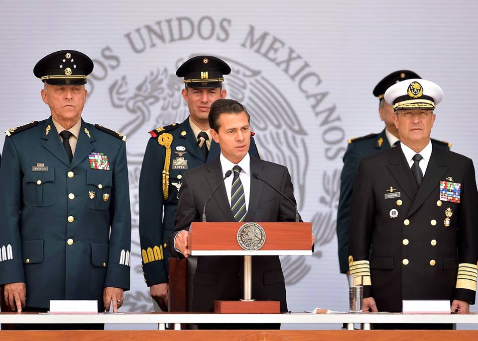 Acompañado por los secretarios de la Defensa, Salvador Cienfuegos; de Marina, Vidal Francisco Soberón, Peña Nieto indicó que “México invariablemente guarda para con cada uno de los integrantes de nuestras Fuerzas Armadas, gratitud y reconocimiento, a esta, la institución de instituciones”.