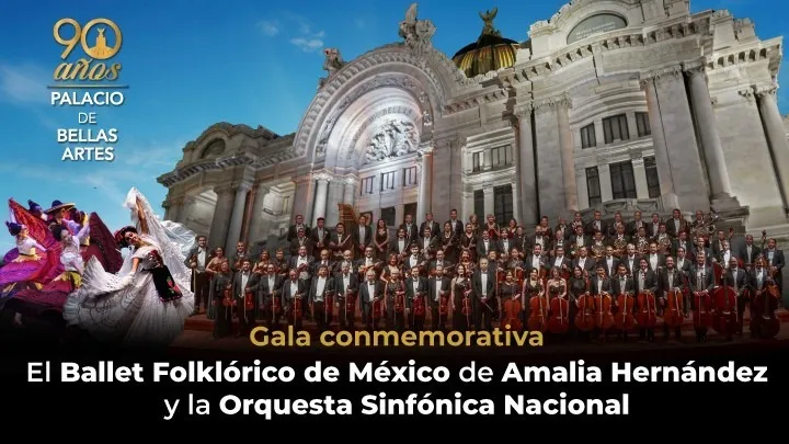 La Orquesta Sinfónica Nacional y el Ballet Folklórico de México de Amalia Hernández tienen preparada una Gala conmemorativa por el 90 aniversario del Palacio de Bellas Artes, donde la música y la danza folklórica se unen para celebrar al recinto artístico y cultural más importante de México.