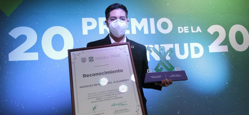 El Premio al Mérito Cívico, Político o Ambiental fue otorgado a Daniel Alejandro Reyes Márquez, estudiante de la Escuela Superior de Comercio y Administración (ESCA), Unidad Santo Tomás, del IPN, quien ha participado en diversos foros nacionales e internacionales para promover la urgencia de replantear la relación de los seres humanos con la naturaleza y crear acciones en favor del medio ambiente.