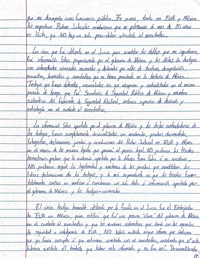 Con estas acusaciones, García Luna continúa con su defensa alegando que su juicio estuvo plagado de irregularidades y que su condena es el resultado de una campaña en su contra por parte del gobierno actual.