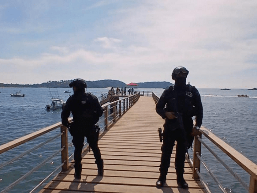 Desde ayer, grupos de seis o siete marinos han estado realizando rondines a pie por la zona para garantizar la seguridad del evento.