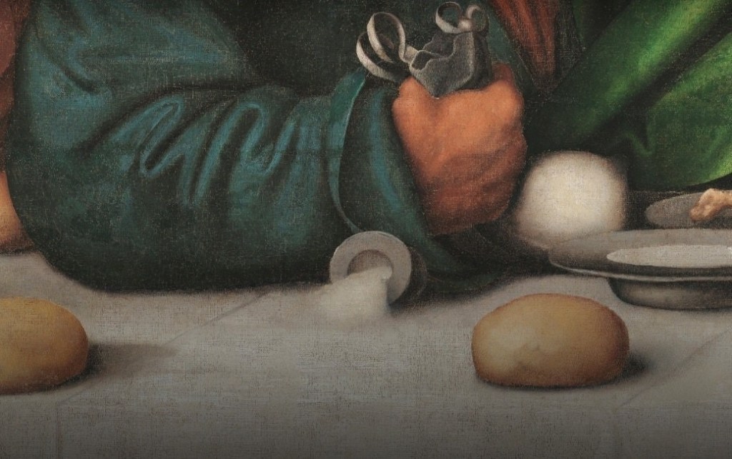 Por otro lado, las poses, los gestos y las expresiones, que para Leonardo debían reflejar las “nociones de la mente”, se muestran con una gran nitidez. Por ejemplo, el rostro de Judas, que horas después traicionaría al Mesías, reside en la sombra, pero se puede apreciar en su brazo derecho de un saco con las monedas de plata que le dieron por llevar a cabo la mítica traición. Al mismo tiempo, se ve cómo derrama la sal de un salero, un símbolo de mal augurio en aquella época.