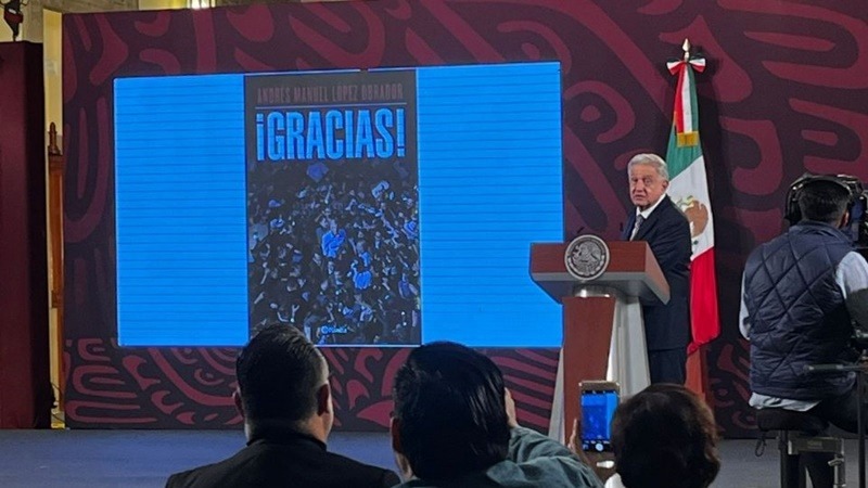 “Ya está la portada y el nombre, va a aparecer la semana próxima, yo creo que como el día 15 ya en librerías”, declaró este viernes durante su conferencia de prensa matutina en Palacio Nacional.