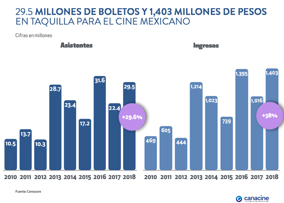 dio a conocer que se estrenaron durante 2018, 116 películas mexicanas, 30% más