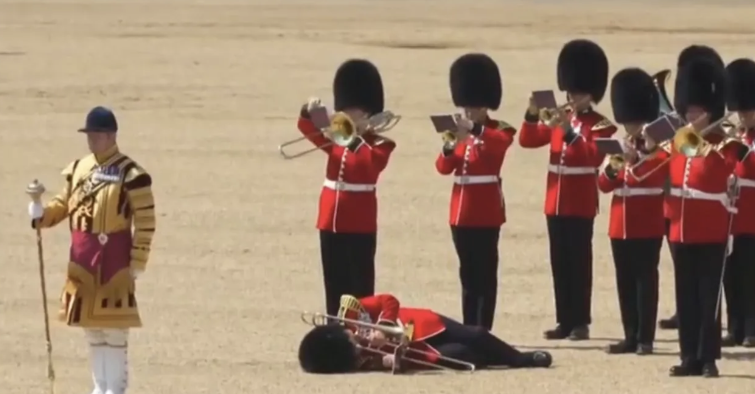 En redes sociales se difundieron videos en los que al menos tres guardias británicos caen inconscientes al suelo, en los ensayos de un desfile.