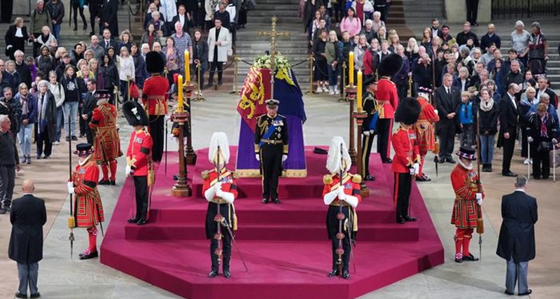 Se prevé que hasta 400 mil personas pasen por la capilla ardiente de la difunta soberana, que abrió el miércoles y permanecerá así hasta la misma mañana del lunes, cuando se celebrará el funeral de Estado en la cercana abadía de Westminster.