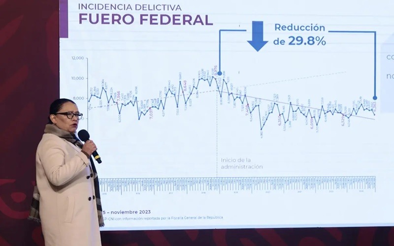 “En los delitos de fuero federal hay una reducción de 29.8% menos en comparación con diciembre de 2018. En el caso de los delitos del fuero federal en la mayoría tuvimos reducciones”, defendió Rodríguez.