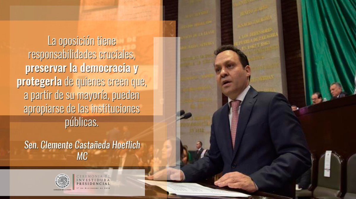 “Por eso, hoy y siempre, el Poder Legislativo debe asumir su papel de contrapeso al Poder Ejecutivo. Hoy y siempre, el Poder Legislativo debe combatir cualquier proyecto de restauración de un régimen de concentración excesiva del poder. Creemos en la democracia, pero no aceptamos la democracia dirigida, la que sólo aparenta respetar al pueblo para manipularlo”.