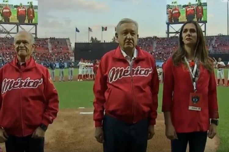 En compañía del empresario Alfredo Harp Helú y de la titular de la Comisión Nacional de Cultura Física y Deporte (Conade), Ana Gabriela Guevara, lanzó la primera bola desde el montículo para dar paso al partido de exhibición entre Los Padres de San Diego, equipo de las Ligas Mayores contra la novena mexicana de Los Diablos Rojos del México.