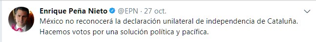 Gracias a la postura de Enrique Peña Nieto y el canciller Luis Videgaray, quienes sin que nadie se los pidiera anticiparon que no reconocerán la independencia de Cataluña, los mexicanos estamos facultados para solicitar a todos los gobiernos democráticos del planeta, que por ningún motivo reconozcan al gobierno de México, en caso de que una minoría se alce con el poder, como ha ocurrido con el PRI en las últimas décadas.
