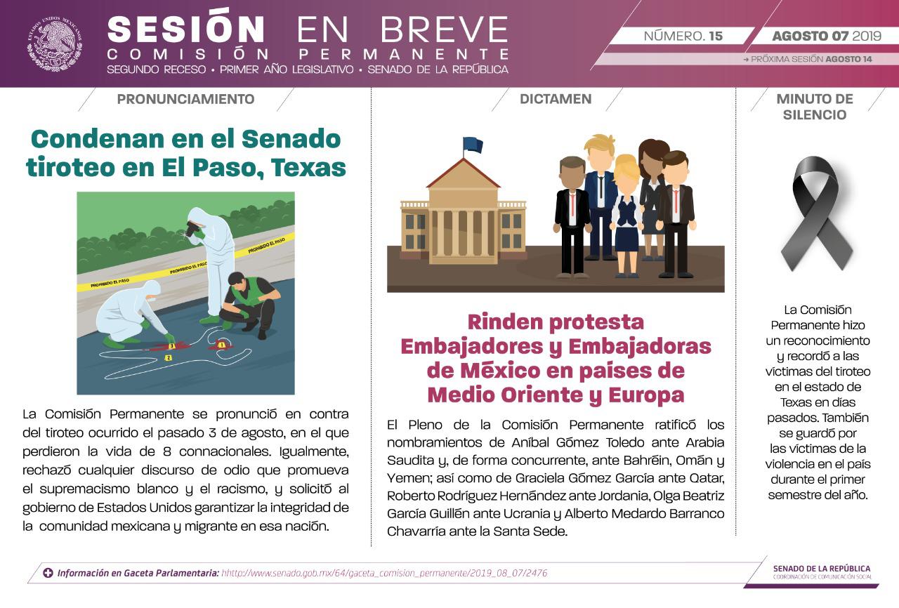 Sesión en breve, condenan en el Senado tiroteo en El Paso, Texas
