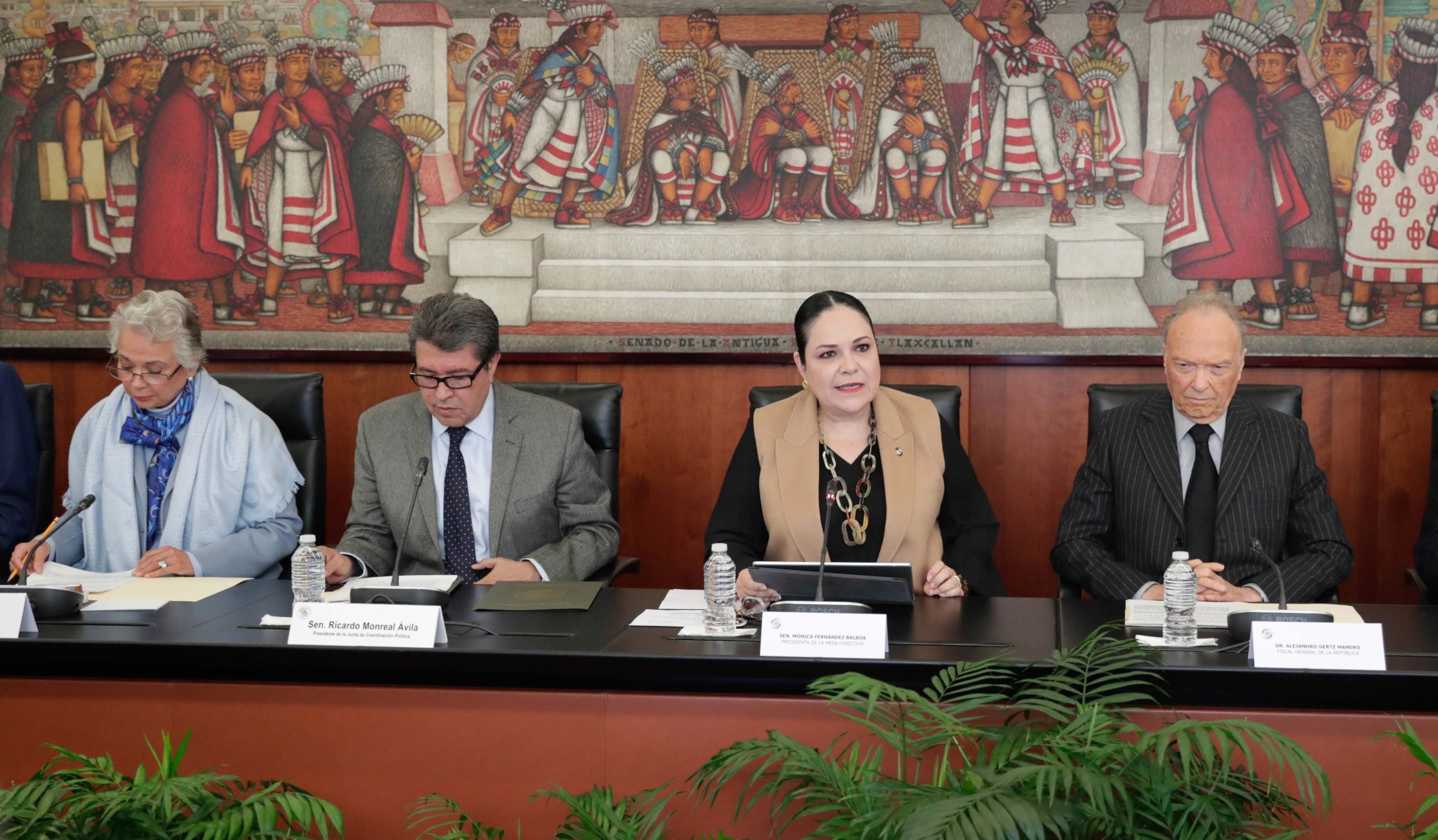 CIUDAD DE MÉXICO.- Los presidentes de la Mesa Directiva, Mónica Fernández Balboa; y de la Junta de Coordinación Política, Ricardo Monreal Ávila, sostuvieron un encuentro con funcionarios federales, quienes detallaron el contenido de las iniciativas que presentará el Ejecutivo al inicio del próximo periodo de sesiones para reformar el sistema de justicia de nuestro país.