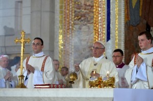 La misa, que celebró en este segundo santuario, estuvo dedicada a sacerdotes, religiosas, consagradas y seminaristas. En el sermón el líder católico aclaró que “a Jesús” no le gustan los “recorridos a mitad, las puertas entreabiertas, las vidas de doble vía”.