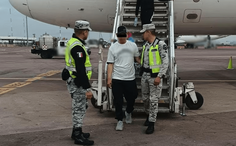 Al llegar a Guadalajara, Mario “N” fue arrestado por elementos de la Guardia Nacional, quienes le informaron sobre sus derechos constitucionales antes de trasladarlo a la Fiscalía General de la República para determinar su situación legal.