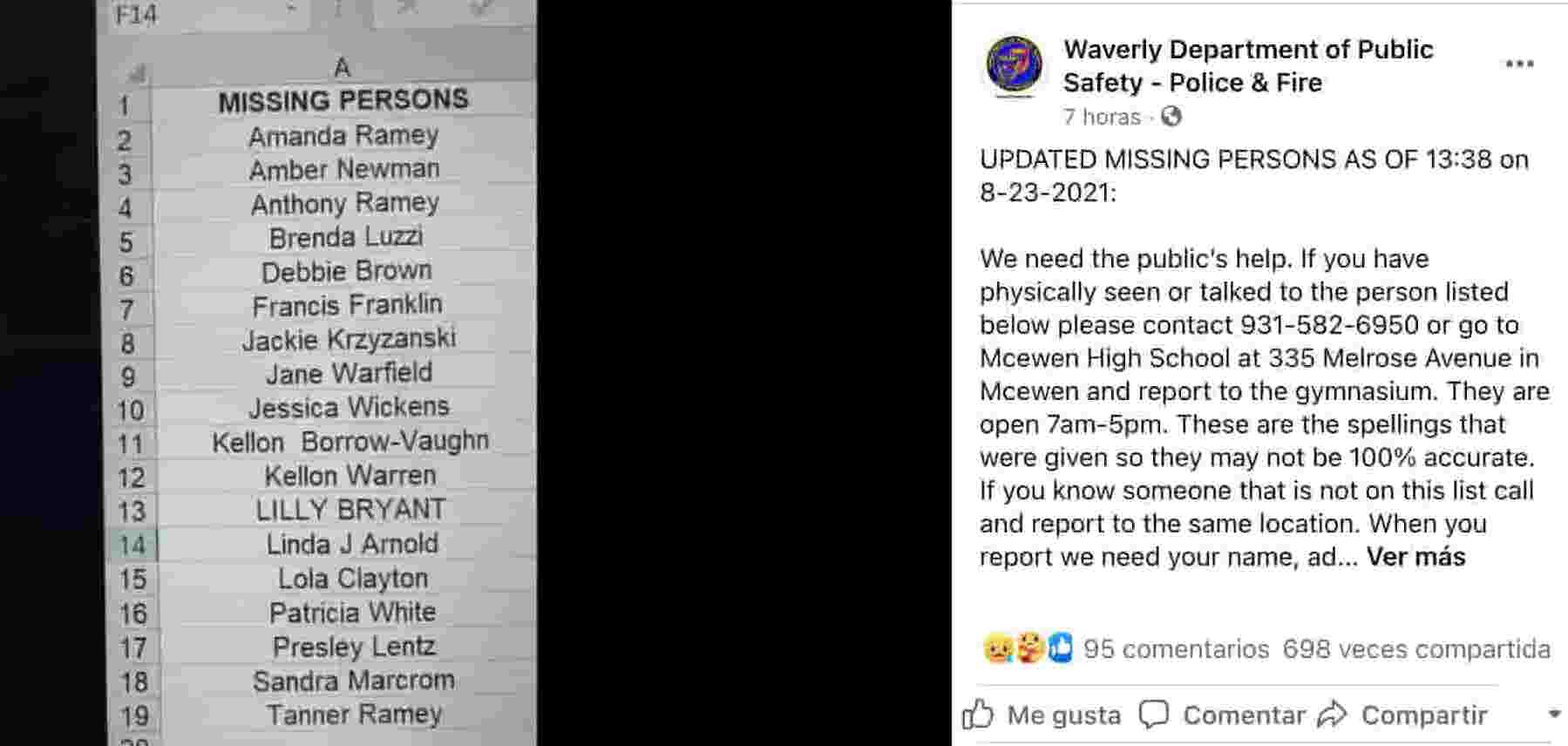 El Departamento de Seguridad Pública de Waverly publicó en su página de Facebook una lista de nombres de personas desaparecidas y pidió ayuda a sus habitantes para dar con ellas.