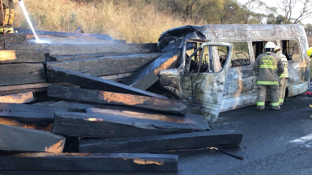 Jalisco: Van familiar colisiona con camión de carga y se incendia; hay 14 muertos