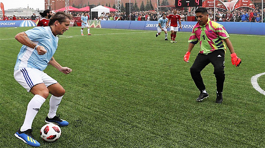 Todo esto ocurrió en un partido amistoso celebrado en la Plaza Roja de Moscú donde jugó con varias ex estrellas del balompié.