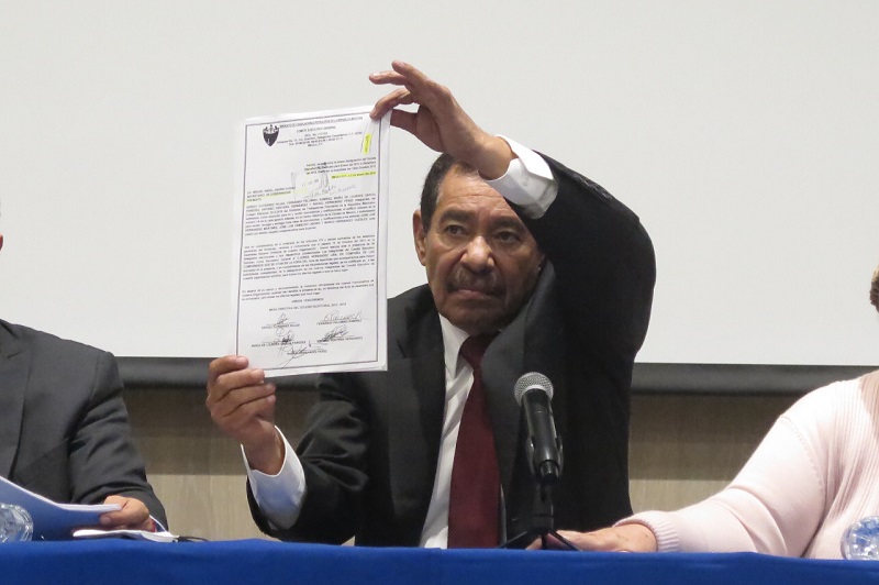 Mostró documento que lo acreditan como secretario General del Sindicato, en comunicaciones que sostuvo con la presidencia de la República, en el anuncio a las secretarías de Gobernación, de Energía y a Pemex, así como el acta notariada de la elección.