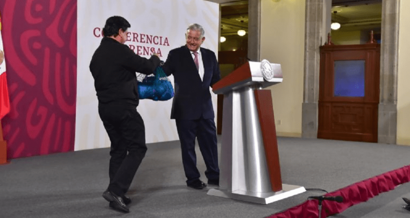 “Nada más, por último, le quiero entregar esto que le mandan tres familias a las que les cambió usted la vida. Son los tres jóvenes de Balancán que estaban detenidos injustamente. Es una hamaca”, precisó la reportera al hacer entrega del regalo.