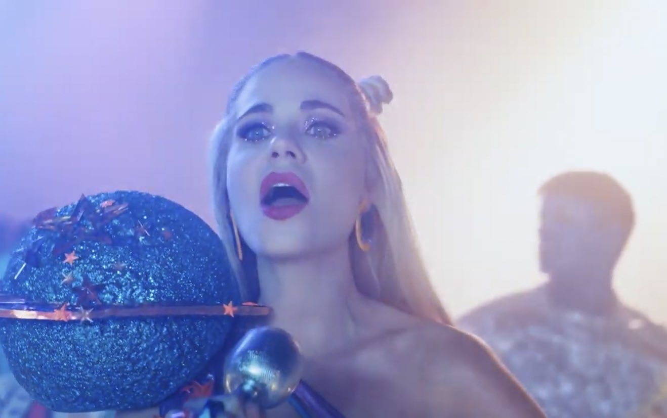 No obstante, estos seres la reciben con alegría pensando que es Katy Perry, a pesar de que ella intenta decirles que es Zooey Deschanel, ellos continúan con la idea de que es la cantante de ‘Dark Horse’.