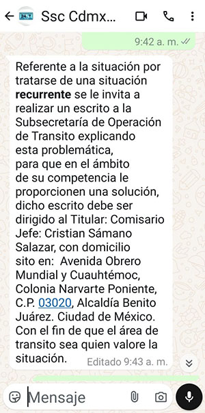 En el gobierno de *Clara Brugada* las cosas parece empeorar, aunque la actual jefa de gobierno afirmó el 10 de diciembre de 2024 que regresarían las Fotomultas, la realidad es que al no aplicarse sanción el reglamento es letra muerta. Incluso la “Unidad de Contacto del Secretario” de la SSC-CDMX no atiende solicitudes ciudadanas para aplicar el reglamento y así agilizar la vialidad, en cambio, ante las denuncias ciudadanas, burocratiza más su acción y remite a los quejosos a redactar escritos dirigidos a la SSCCDMX para actuar.