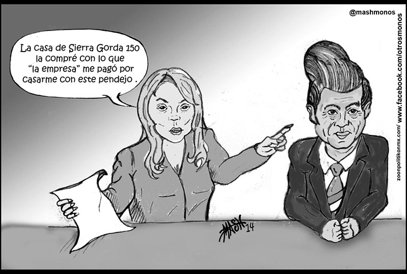 ¡LA GAVIOTA!….”probecita”……Pero,si no sabian,dejeme presumir,YO SI!,la ”very famous” Casa Blanca de las Lomas,fue el “pago” de TEYA(HIGA),por los “favores” recibidos por EPN,Viedegaray,Esparza,en contratos MULTIMILLONARIOS DE OBRAS PUBLICAS,EN EdoMex.Obras mal hechas con materiales de mala calidad y precios sobre valuados en miles de millones de pesos.Tambien escribi,al inicio del sexenio de EPN,que “el matrimonio(contrato)”,se terminaba con el esexenio”.Fue el papel más caro(a ver si no le sale el “chirrion por el palito”)de actuación que haya cobrado “la gaviota”.