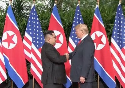 Donald Trump y Kim Jong Un se dan histórico apretón de mano