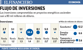“Actualmente hay 100 compañías de 18 países que ya cuentan con contratos para el desarrollo de proyectos de hidrocarburos y electricidad en México. La inversión estimada asciende a 219,000 millones de dólares, de los cuales hay 80,000 millones de dólares en inversiones comprometidas en materia de exploración y extracción de hidrocarburos por las dos rondas petroleras, más los proyectos de transporte, almacenamiento, distribución y expendio de gas natural y petrolíferos, y las dos subastas de largo plazo de electricidad, la nueva generación, distribución y transmisión de energía eléctrica; de las inversiones comprometidas, tan sólo para el 2017 la CRE estima una llegada de 30,000 millones de dólares en todos los rubros energéticos”.