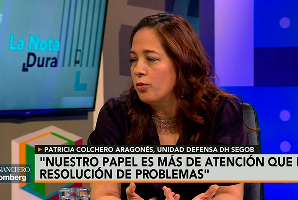 Uno, dos minutos de desconcierto, alarma, hasta que se hace presente en la mesa de trabajo Patricia Colchero Aragonés Coordinadora Ejecutiva Nacional y Secretaria Ejecutiva del Mecanismo que garantiza, por parte del Estado mexicano, mi integridad física, para anunciar que ese protocolo (el del boletín y el de hacer público mi caso) no está contemplado, que tendría que hacerse general, y no todos los afectados gustarían de publicitarlo.