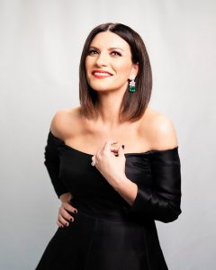 Pausini llevó aretes en platino con esmeraldas octagonales y diamantes combinados con un anillo en platino con 1 diamante talla esmeralda y diamantes en pavé.