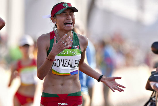 La mexicana se adjudicó la presea de plata en la marcha de 20 kilómetros en los Juegos Olímpicos de Río 2016, perdiendo por dos segundos ante la china Liu Hong of China.