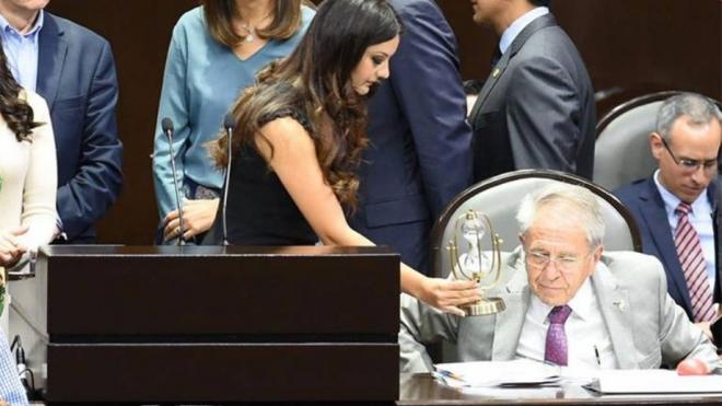 “Yo con muchísimo respeto se lo hago llegar. Este mosquito acaba de llegar de Jalisco, de Guadalajara, yo se lo entrego, no sé si se atreva a liberarlo… No sabe lo que implica estar enfermo de dengue hemorrágico, y ojalá se lo pueda entregar al señor presidente de mi parte, a ver si ahora sí toma en cuenta este tipo de epidemias”, soltó la diputada del PRD.