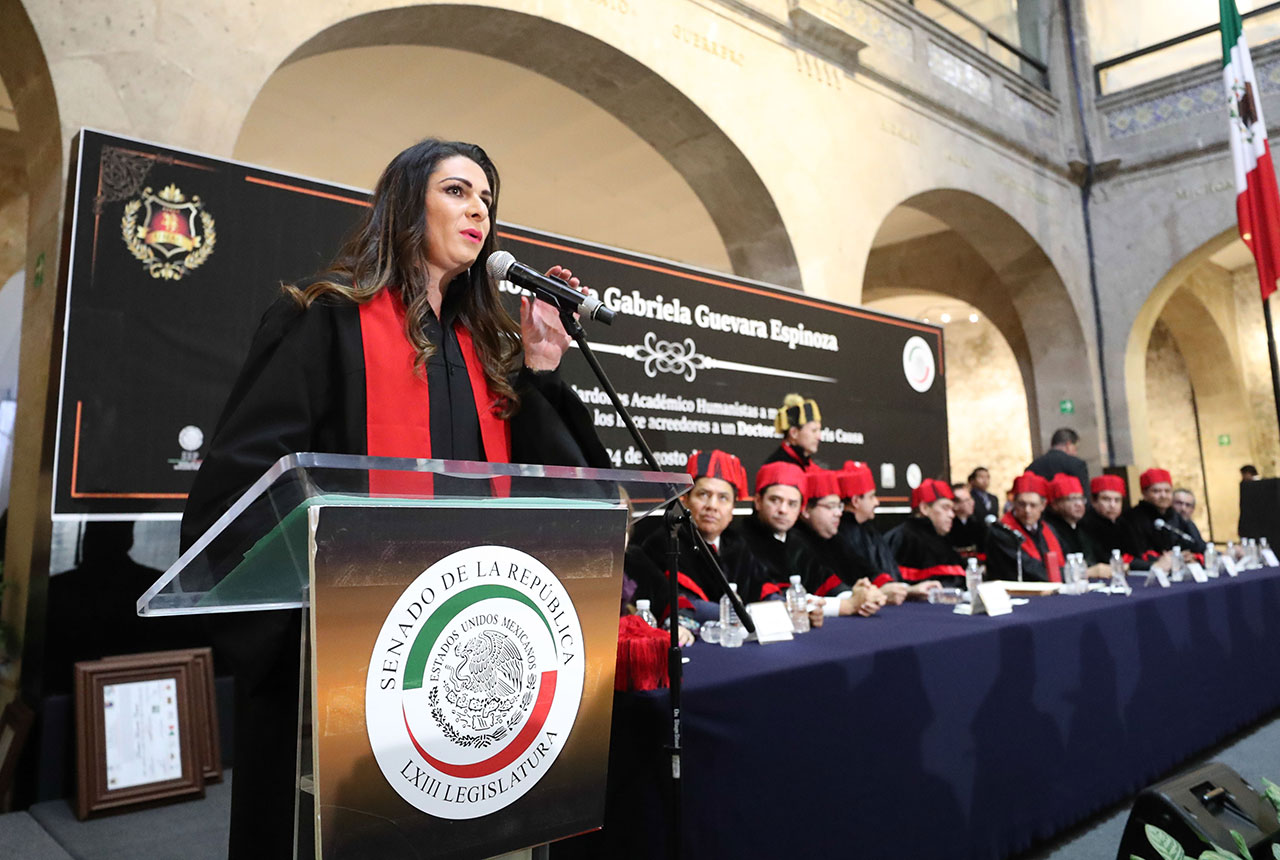 La Universidad Analítica Constructiva de México reconoció por sus contribuciones deportivas y en el ámbito legislativo a la senadora del Partido del Trabajo (PT), Ana Gabriela Guevara, en una ceremonia solemne efectuada en la Casona de Xicoténcatl, antigua sede del Senado de la República.