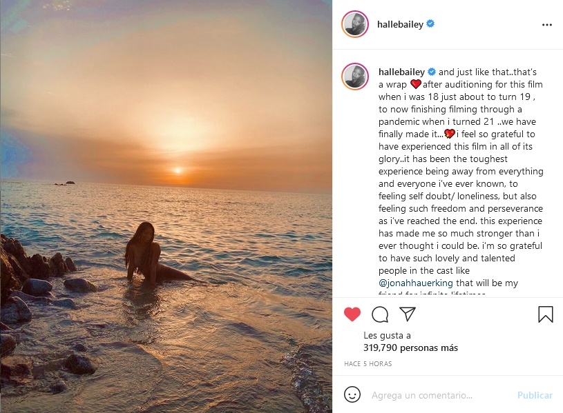 Halle Bailey escribió un extenso pie de foto en el que describe su experiencia de trabajo en la esperada película, agradeciendo a sus compañeros de reparto y anunciando el fin de las grabaciones.