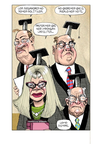 En México,la suprema corte de (in)justicia,durante todo el tiempo prianista,se dedicó;¡ SOLAMENTE!,a aprobar las leyes que por mayoria(sobrerrepresentación,le llaman hoy),y pago de voto de por medio,se hacian en las cámaras ”legislativas”.Todo,por supuesto,con el conocimiento de “los magistrad@s”.Que por legalizar los crimenes contra el pueblo,leyes a modo para los grupos de poder económico y político,recibieron millones de pesos y premios por su “patriotismo”.Tod@s son millonarios.