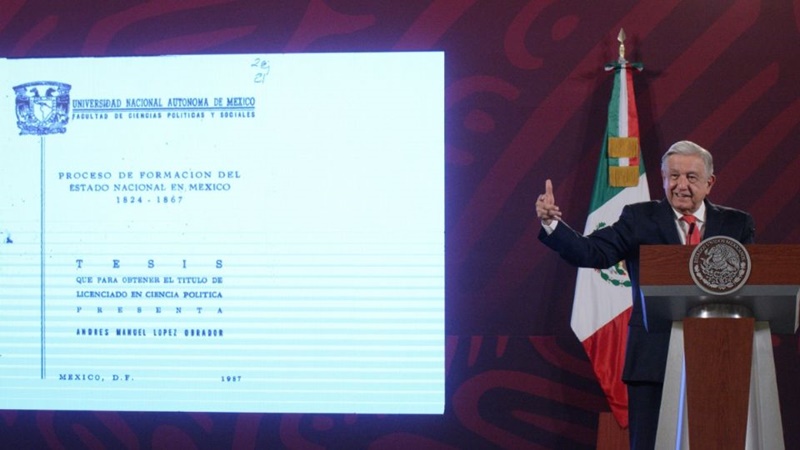 Explicó que un ciudadano solicitó a la UNAM conocer la tesis y el título del mandatario mexicano. Ante esto, la máxima casa de estudios envió una liga donde encontraría el documento adjunto; sin embargo, la universidad señaló que el nombramiento del presidente es clasificado como un documento confidencial.