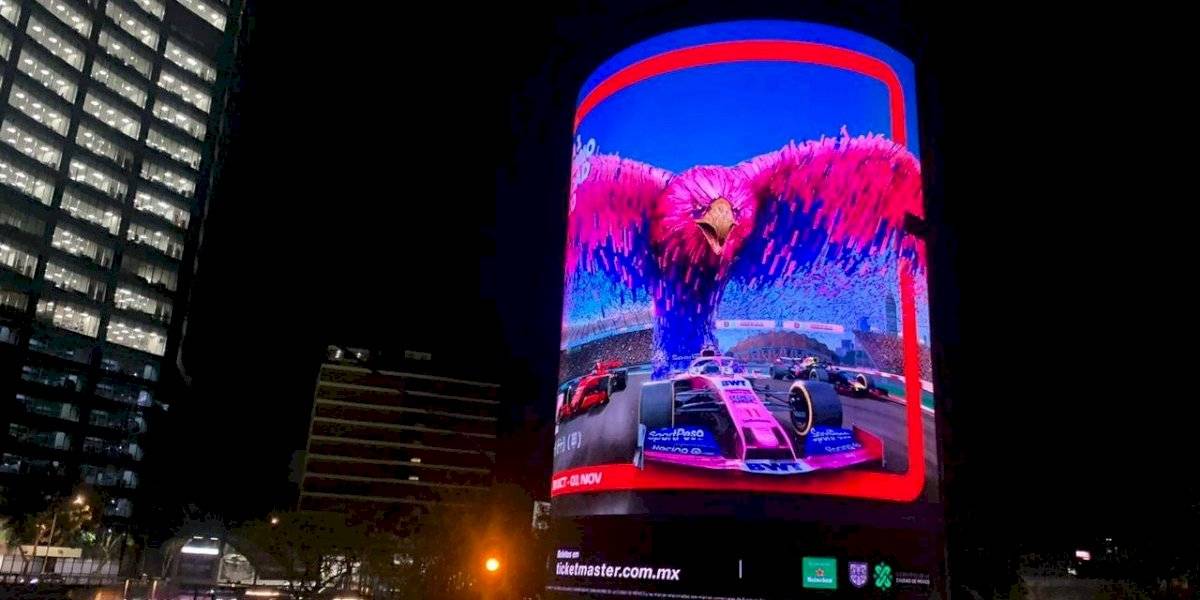 En otro anuncio observa el águila en color azul y rojo, además de un vehículo de la escudería Red Bull, la cual cuenta con los pilotos Max Verstappen y Alexander Albon. Mientras que el tercero se observa un águila con alas rosas sobresale de un monoplaza de Racing Point, mismo que será manejado por el piloto anfitrión, el mexicano Sergio Pérez.