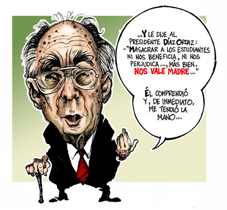 Dice Rafael Cardona,que LEA no tuvo nada que ver en la masacre de Tlaltelolco,y que por eso,El mounstruoso Diaz Ordaz,reconocio su culpa. Raymundo Rivapalacio va más lejos,le endilga a Echeverria,casí,el titulo de héroe nacional.Pues,según “don raymundo”,combatío a criminales con uniforme militar como Genaro Vazquez y Lucio Cabañas y otros “delincuentes” como estos.