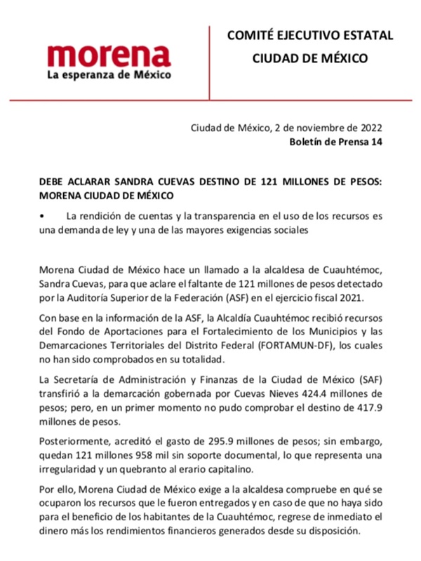 Aunado a esto, indicaron que García Sepulveda habría requerido de las municipalidades el pago inmediato de un supuesto incumplimiento por concepto sobre nóminas el 31 de octubre.