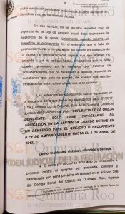 El ex gobernador de Quintana Roo, Roberto Borge Angulo, promovió el trámite de un juicio de amparo, mismo que el Juzgado Sexto de Distrito en el estado de Morelos aceptó, dejando en claro que habría una revisión. En febrero de este año la juez Contreras Perales le negó a Roberto Borge la suspensión definitiva.