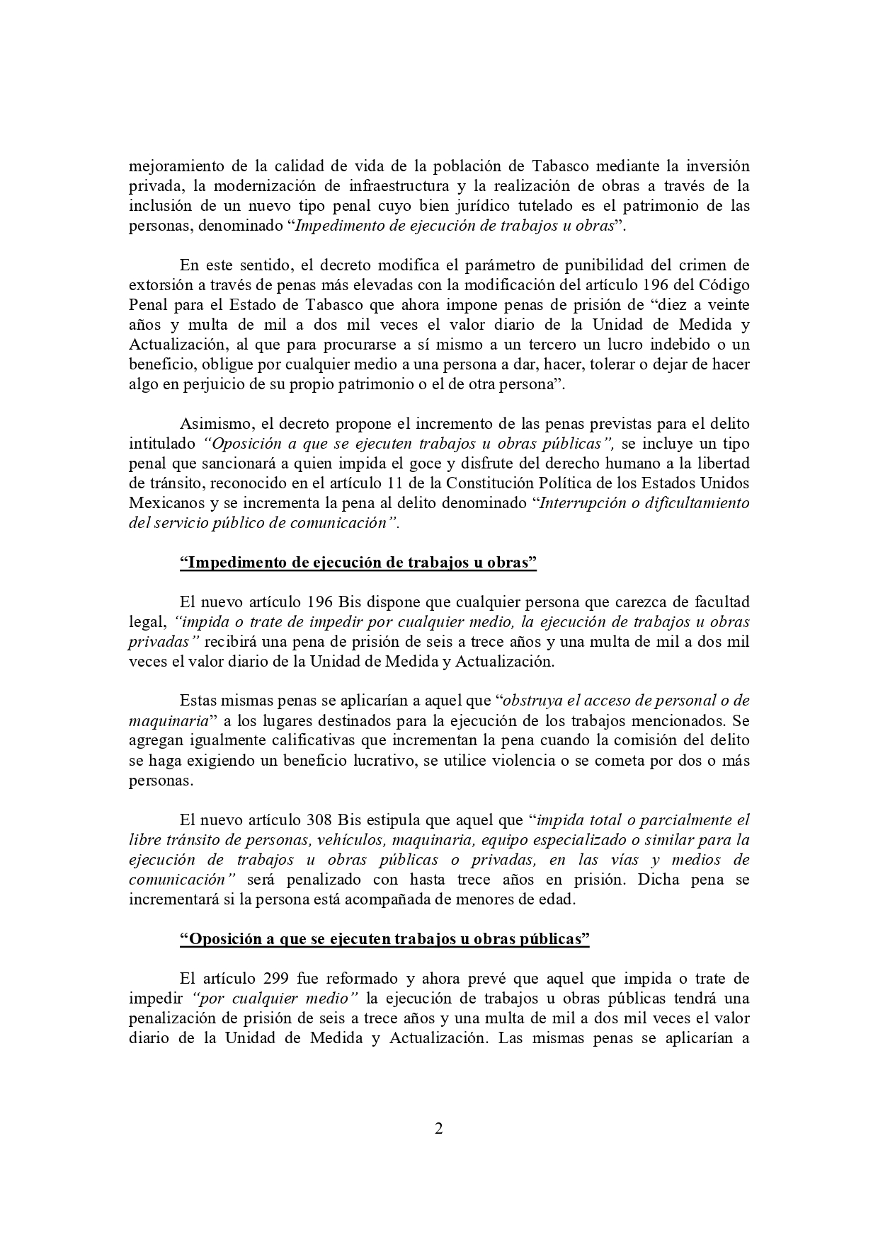 Se mostraron preocupados porque, según el Código Penal de Tabasco, la participación de dos o más personas en el impedimento de la construcción de obras públicas ”por cualquier medio” agravaría el castigo legal contra los manifestantes.